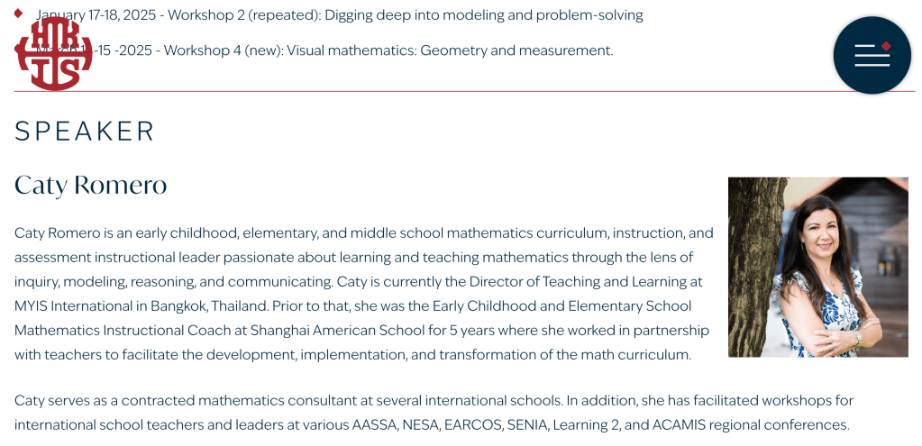 Becoming a math consultant in international schools has been one of the most transformative experiences of my career. Every time I facilitate a new session, I continue to learn and grow, not just as a consultant but as an educator. This journey began with a desire to share my own story—how I shifted from being a math teacher who relied heavily on memorization and algorithms (the way I was taught) to becoming a math educator who believes deeply that math is thinking. It’s struggling, problem solving, creating, justifying, and making sense of ideas. Math isn’t just about getting the right answer—it’s about the process. And every time I work with educators around the world, I’m reminded of how powerful that shift in mindset can be.